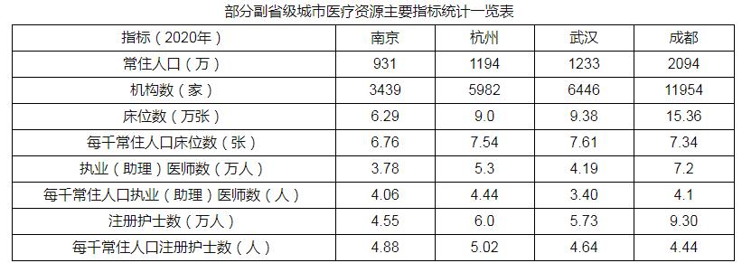 对比杭州、武汉、成都等城市,我市在医疗资源总量、医疗机构床位人均拥有量等方面仍然存在一定差距。